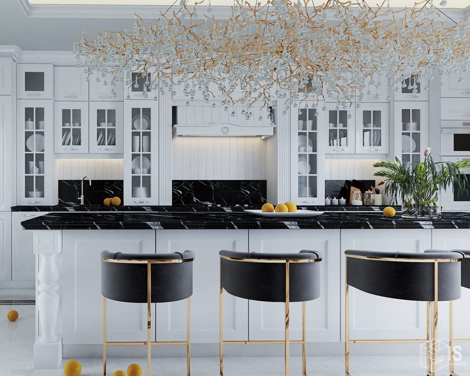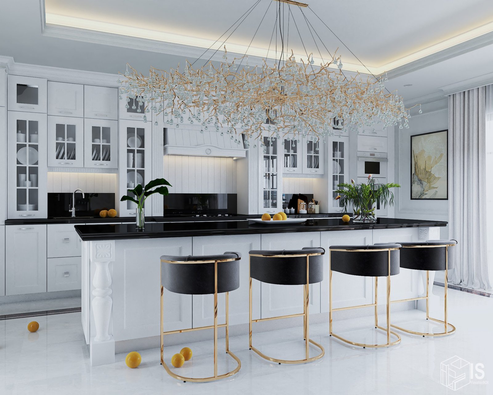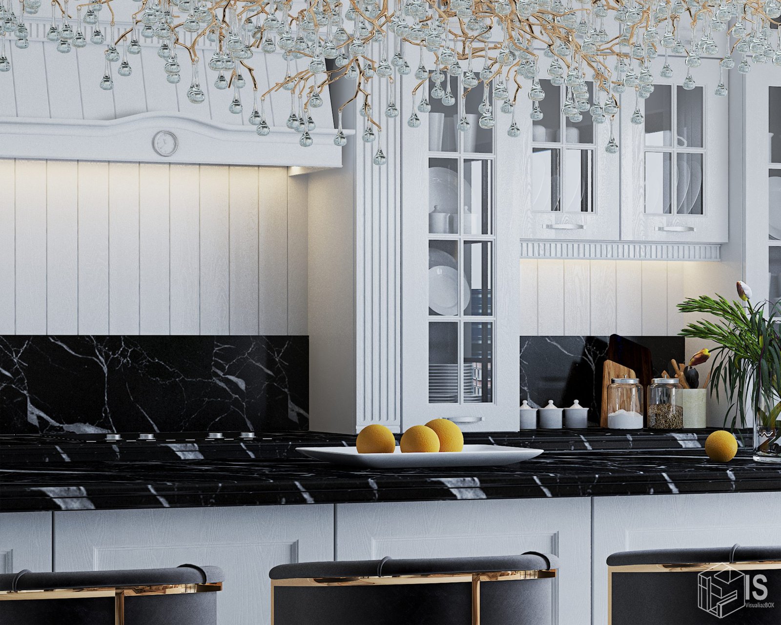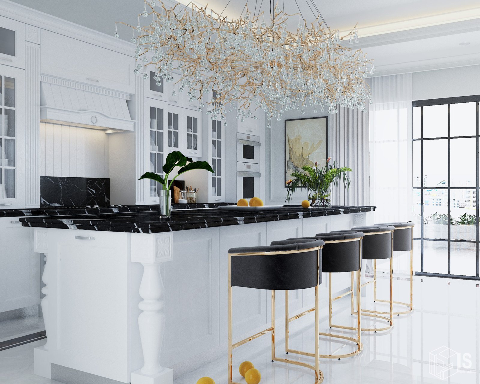 Area dapur menggunakan top tabel hitam yang kontras dengan kitchen set agar mudah di bersihkan dari noda dan tidak berbekas.